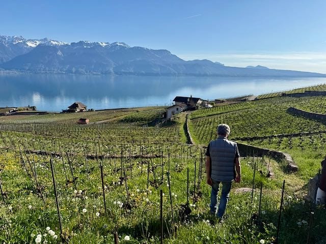 The Jaunin family has been growing chasselas grapes and making wine in the Chexbres village area since 1458. I had the pleasure of visiting Pierre-Andre Jaunin, his wine cellar and vineyard just as the vines were beginning to bud this week. His vineyard might just have the best view of Lake Geneva and the Swiss alps of the entire region.